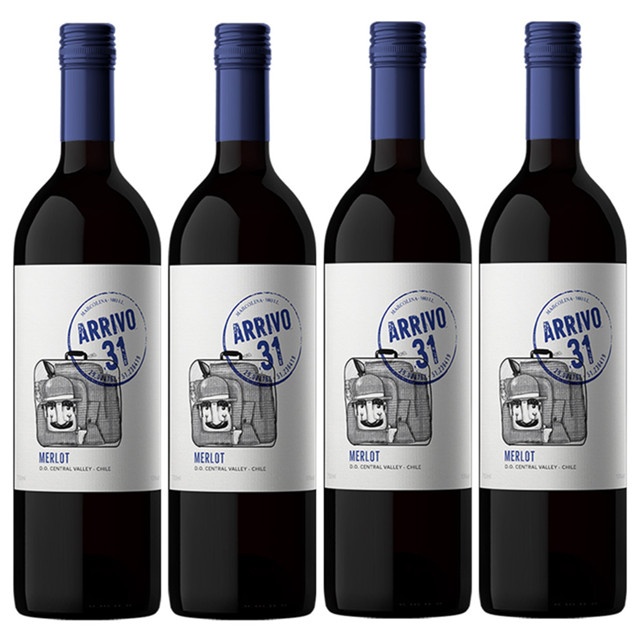 Vinho Tinto Seco Chileno Arrivo 31 Merlot 750ml Kit 4 unidades