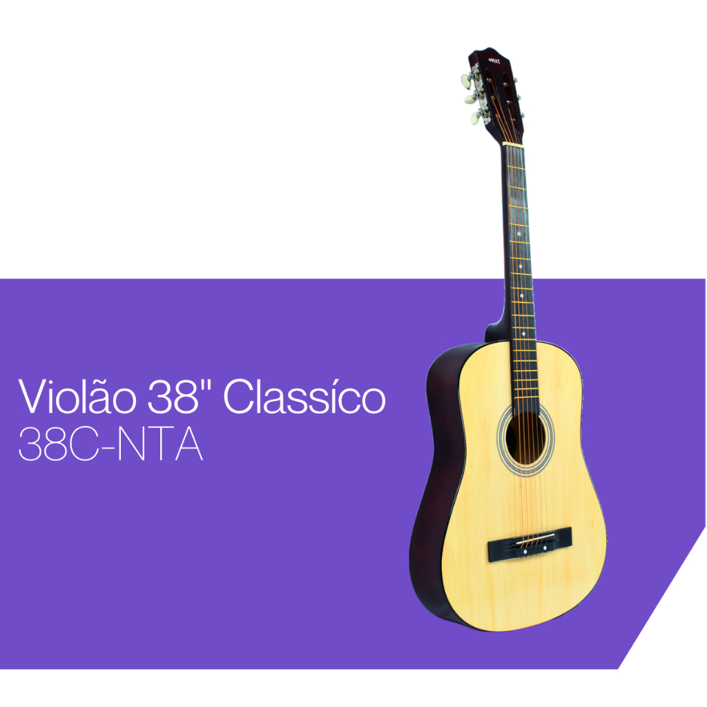 Violão Clássico MXT 38CNTA – Ideal para Iniciantes Este violão clássico da linha MXT é a escolha perfeita para quem está começando no mundo da música. Fabricado em madeira natural de tília, oferece um som equilibrado e agradável, além de um visual elegante com acabamento envernizado. O modelo 38CNTA conta com 6 cordas de aço, proporcionando maior projeção sonora e resistência, além de 18 trastes que garantem boa extensão para estudos e prática. Seu tamanho confortável (96 cm de comprimento e 36 cm de largura) e peso leve de aproximadamente 2,5 kg facilitam o manuseio, tornando-o ideal para uso diário. Marca: MXT Modelo: 38CNTA Tipo: Violão clássico Material: tília Cor: Madeira natural Cordas: 6 em aço Trastes: 18 Acabamento: Envernizado Dimensões: 96 cm x 36 cm Peso: 2,5 kg Perfeito para iniciantes que buscam qualidade, conforto e um ótimo custo-benefício para dar os primeiros passos na música!