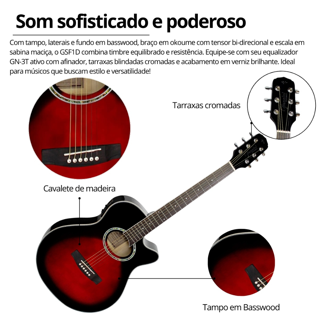 Violão Elétrico Giannini Gsf1d Com Afinador + Kit Acessórios