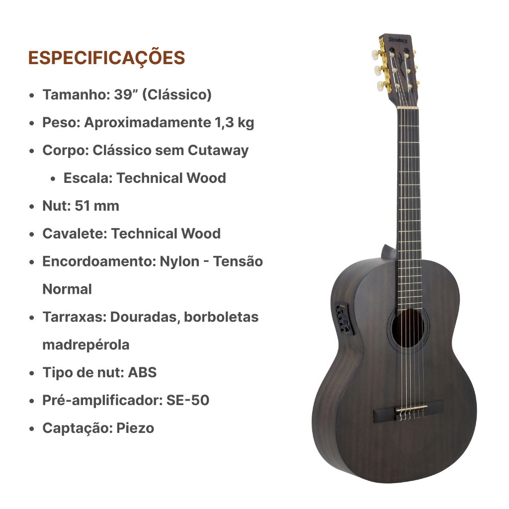 | Violão Elétrico Strinberg Fs3c Nylon Tobacco Tos +acessorios este produto | R$ 1.057,33 | — | 4.7/5 | — |