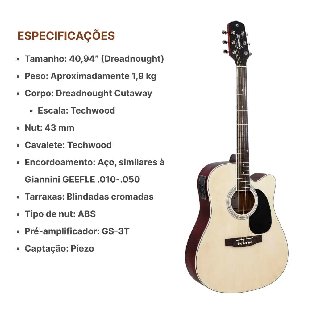 Violão Eletroacústico Giannini Gdc 1 Ns Capa Correia Kit Ful