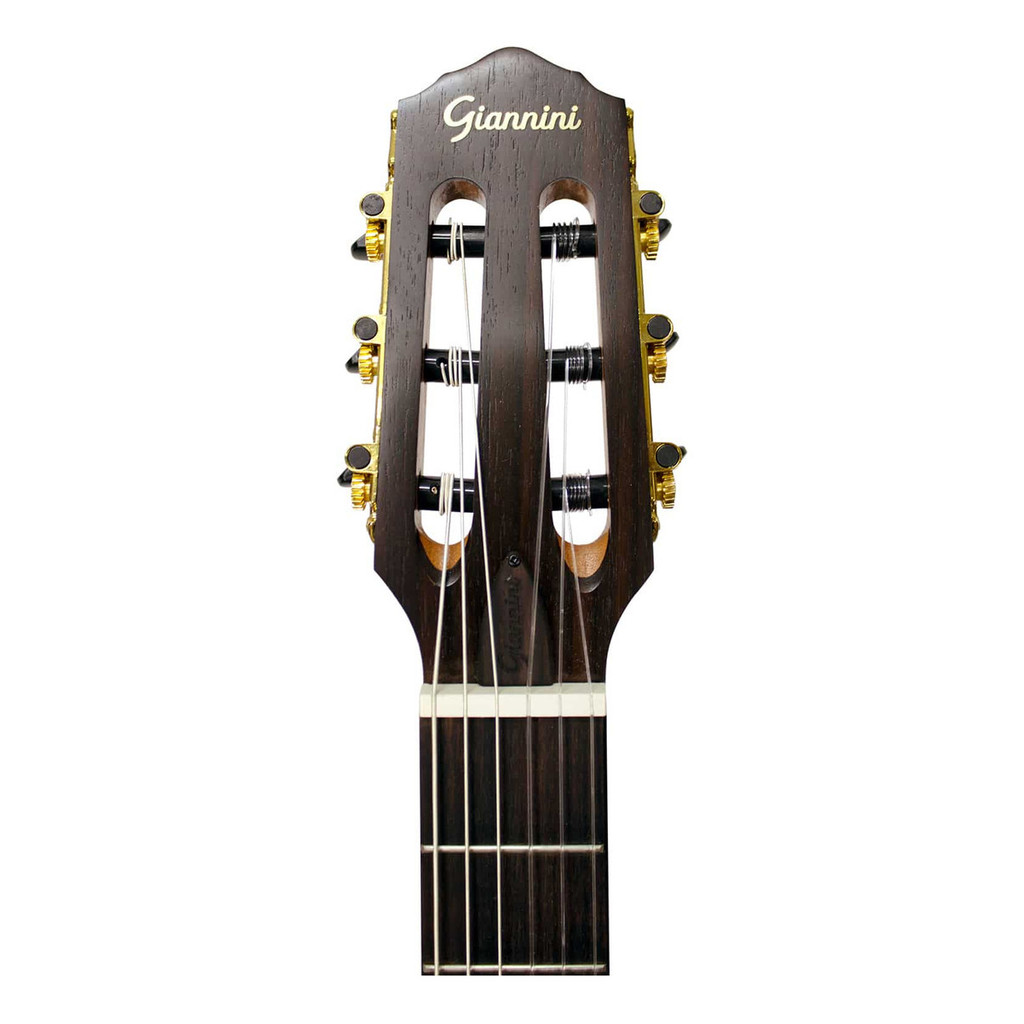 Especificações Origem: China Shape: Violão elétrico portátil náilon Cor: Natural (N) Corpo: Okoume Laterais destacáveis: Sapele/Poplar Braço: Okoume Tensor: Bi-direcional Escala: Rosewood maciço Comprimento da escala: 650 mm (25,6”) Cavalete: Rosewood maciço Tarraxas: Pino grosso douradas, 3+3 Pestana: PPS Largura da pestana: 48 mm (1,9”) Rastilho: PPS Largura do rastilho: 80 mm (3,15”) Equalizador: GT-100, ativo 3 bandas com afinador e saída P-10 Recursos: Sistema Bluetooth, entrada auxiliar, efeitos de Chorus e Delay, saída para fones de ouvido Acabamento: Verniz fosco/open pore Cordas: Náilon extra pesadas, similares à Giannini GENWXPA Headstock: Placa adicional em Rosewood Largura (montado): 320 x 230 mm Altura: 50 mm Tamanho total: 101 cm (39,8”) Garantia: Três meses a partir da data na nota fiscal de compra Acompanha: Bag náilon na cor preta, bateria 18650 recarregável ACOMPANHA: -01 BAG GIANNINI -01 CABO DE 5 METROS -01 CORREIA -01 CAPOTRASTE -03 PALETAS