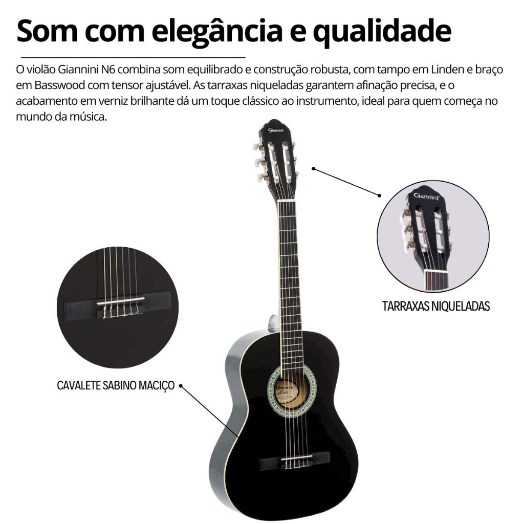 Violão Infantil 3/4 Acústico Giannini N6 Nylon + Capa Afinador Correia