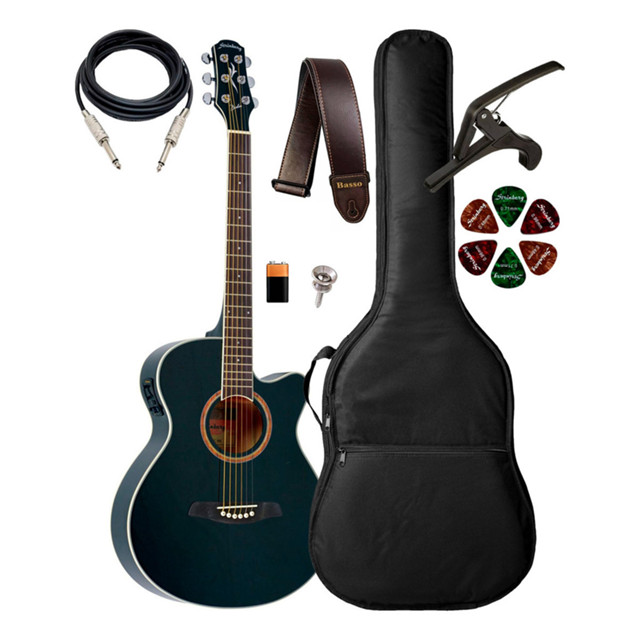 ACOMPANHA O KIT: 1) VIOLÃO ELETROACÚSTICO STRINBERG BE30C-BK 2) CAPA ACOLCHOADA 3) 2 ROLDANAS 4) CORREIA BASSO SF-112 5) CABO P10 5M 6) CAPOTRASTE 7) 6 PALHETAS Somos a Eletromusic Loja Especializada em Instrumentos Musicais a mais de 10 anos no Mercado. Qual é o nosso diferencial? A música corre em nossas veias e por isso amamos o que fazemos, Buscamos sempre oferecer qualidade pelo Melhor preço. Todos os nossos produtos são de Fornecedores Nacionais com rigoroso controle de qualidade, possuem nota fiscal eletrônica e garantia de fabrica. Você é bem vindo para fazer parte da nossa história A Strinberg apresenta sua nova linha de violões, a linha EURO SERIES, o modelo em questão é o BERLIN, violão construido no formato Clássico com Cutaway, com madeiramento selecionado, pre amplificador com afinador e cordas de aço. O BC30C da Strinberg é um excelente violão para qualquer situação, estudo, palcos e pequenas gravações. Aproveite agora mesmo e garanta o seu violão Strinberg! Especificações: Marca: STRINBERG Modelo: BERLIN BE-30C BK Cor: PRETO Acabamento: BRILHANTE Comprimento Total: 101,5cm Construção: Laminado Peso: 1856 Madeira do Tampo: Aghatis Madeira do Corpo Aghatis Comprimento do Corpo: 47cm Largura do Corpo: 38cm Espessura do Corpo: 10cm Madeira do Braço: Nato Comprimento do Braço: 54,2 Madeira da Escala: Blacwood Comprimento da Escala: 443mm Raio da Escala: 16' Largura do NUT: 42,5 Espessura do Braço na 1ª casa: 22,5mm Espessura do Braço na 10ª Casa: 24mm Captador: Piezo de Rastilho Pré: SE-40 c/ Afinador Chaves: Tuner/ Phase Controles: Vol. Bass. Mid. Treble, Ponte: Cavalete em Black Wood Trastes: 20 Normais Tarraxas: Blindadas, Cromadas Quantidade de cordas: 6 Origem: China Direção: Destro