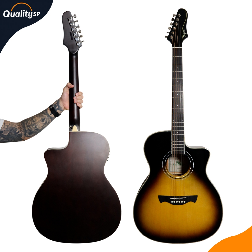 Seja bem-vindo a QualitySP! Violão RIO NEGRO EQ Grand auditorium cutaway O Violão RIO NEGRO EQ Grand Auditorium Cutaway combina beleza e qualidade sonora. Com design elegante e formato grand auditorium cutaway, oferece conforto e versatilidade. Equipado com equalizador, proporciona ótima amplificação. Ideal para músicos que buscam performance e estilo em um só instrumento Especficações Técnicas: • Marca: Tagima • Modelo: Rio Negro EQ • Violão: Eletrico / eletroacustico • Tampo: Spruce • Escala: Tech wood – C 25.5” • Braço: Okoume - Shape C • Lateral / Fundo: Agathis • Cavalete: Purple heart • Nut: 43mm • Captação: Piezo • EQ: Tagima TEQ-8 • Cor: Vintage sunburst • Escudo: Lite ivory Atenção: **Produto sujeito a alteração sem aviso prévio** **Para garantir um envio rápido e eficiente, em casos de compra com mais de 1 unidade, pedimos a gentileza de realizar compras separadas para cada unidade. Agradecemos sua compreensão e estamos à disposição para esclarecer qualquer dúvida e proporcionar a melhor experiência!** Conteúdo da Embalagem: • Violão Rio Negro EQ • Manual de Instruções