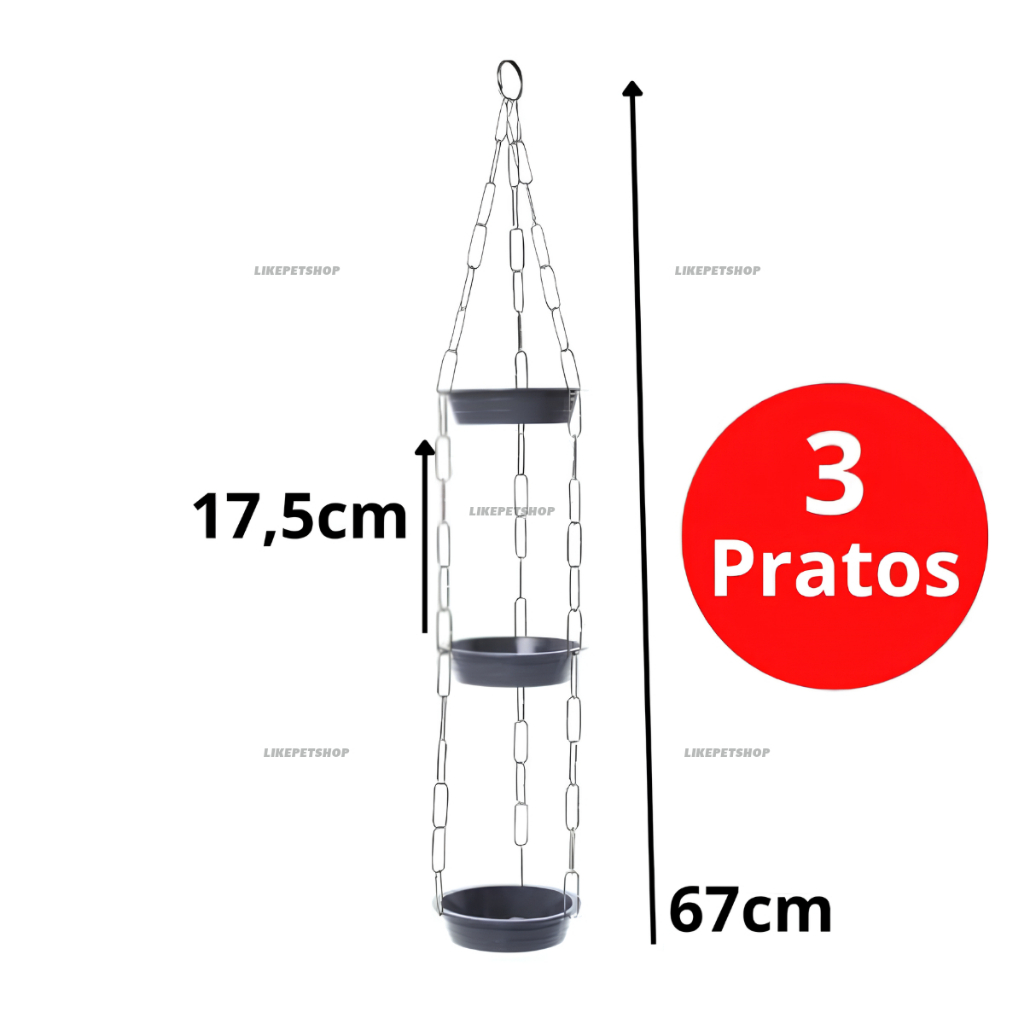 Os violeteiros com correntes de metal são resistentes e práticos, agregam valor e embelezam seu espaço. São excelentes para pendurar vasos e cachepôs em varandas, garagens, pergolados, jardim de inverno, etc. As correntes são confeccionadas de arames reforçados, recebendo um tratamento resistente à corrosão causada pela umidade. Os pratinhos com 11cm de diâmetro são produzidos em plástico polipropileno de alta durabilidade, atóxico (não tóxico), resistentes. OPÇÕES DE QUANTIDADE 1 unidade CARACTERÍSTICAS Produzido em metal e polipropileno Cor: dourado, preto e prata ESPECIFICAÇÕES PRATO: Diâmetro boca: 11cm Diâmetro base: 8cm Altura: 2cm 2 PRATOS Comprimento: 44cm 3 PRATOS Comprimento: 68cm 4 PRATOS Comprimento: 86cm 5 PRATOS - Comprimento: 108cm