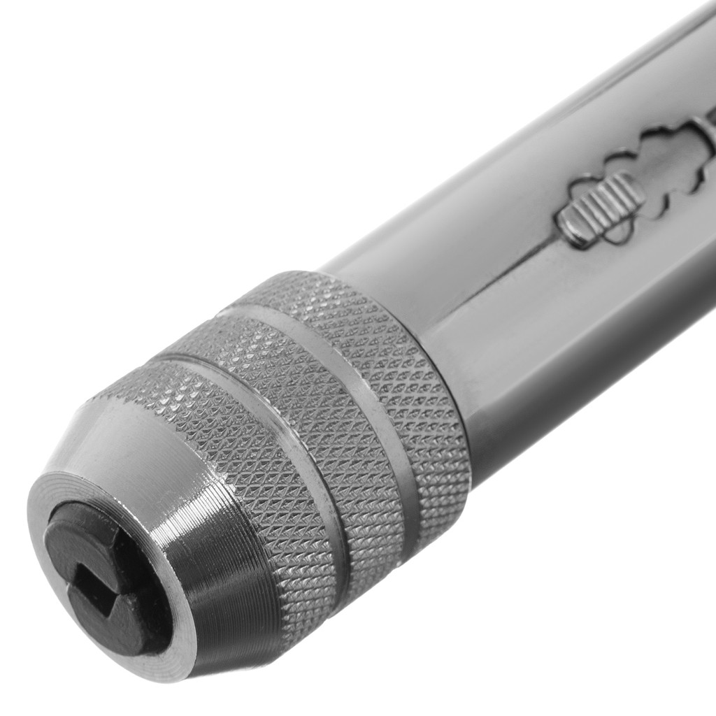 Vira Macho Tipo T Cromado com Catraca - M5 a M12 Descrição do Produto: - O Vira Macho tipo T com Catraca foi projetado para segurar o macho utilizado no rosqueamento, com revestimento cromado que protege contra corrosão. Possui mecanismo de reversão que, simplifica bastante o trabalho com a ferramenta. Especificações Técnicas: - Tipo: T; - Com catraca: Sim; - Acabamento: Cromado; - Medidas: 60 x 155 mm; - Material: Aço carbono 45; - Diâmetro da rosca: M5, M6, M8, M10 e M12. Itens Inclusos: - 1 Vira macho tipo T cromado com catraca - M5 a M12.