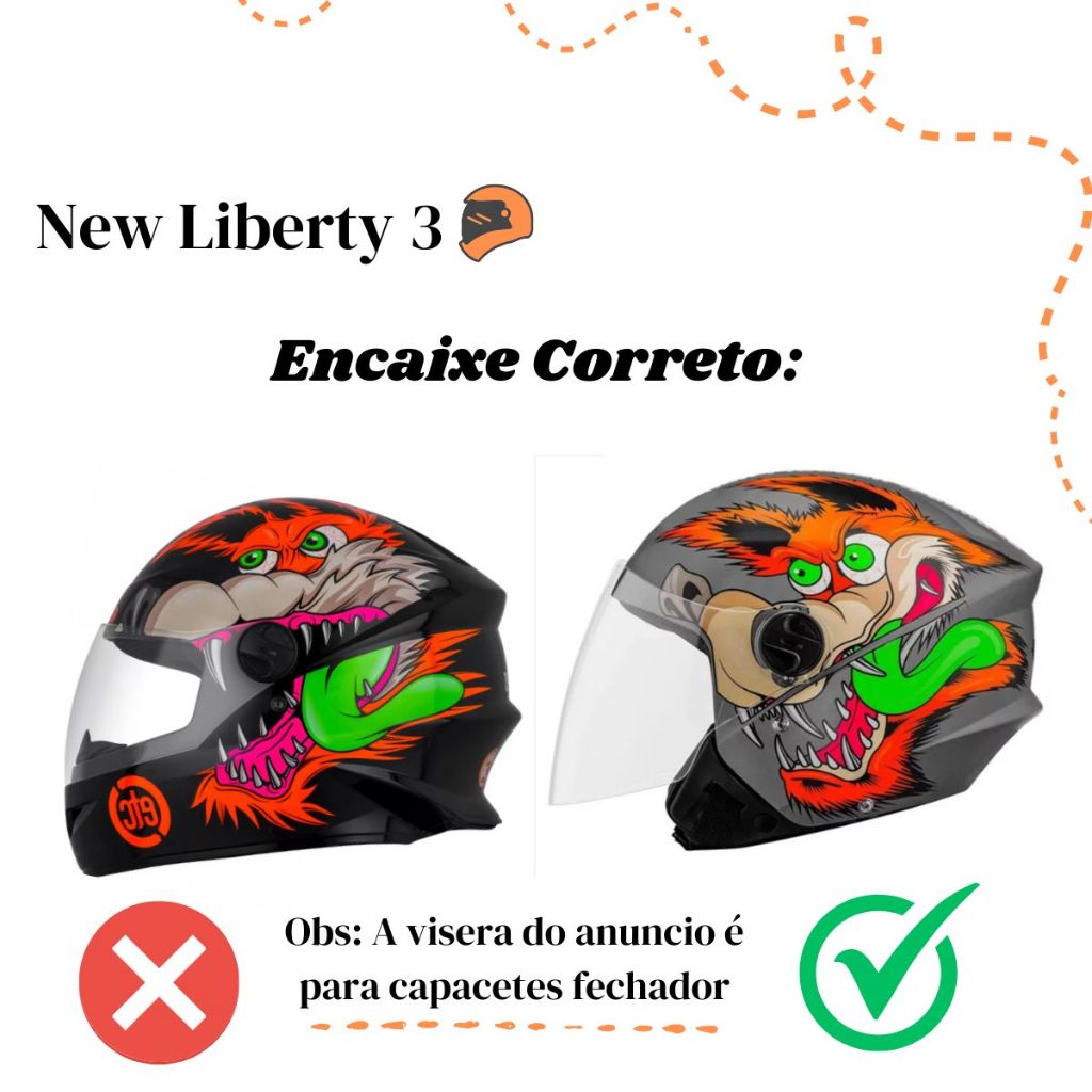 Viseira + Botão Fixador + Botão Reparo da Viseira Compatível com: - Pro Tork: New Liberty 3 / New Atomic - Taurus: Joy 23 Conteúdo da Embalagem: 01 Viseira 01 Par de Botões Fixadores 01 Par de Botões Catraca de Movimento Especificações da Viseira: - Com tratamento resistente a risco. - Viseira em policarbonato com espessura de 2mm; - Viseira compatível com capacetes do tamanho 56, 58 e 60 - Super resistente - Alta transparência - Alta durabilidade - Boa vedação e funcionalidade no capacete - Proteção contra raios UV Especificações dos Botões: - Padrão Original - Peça extremamente precisa que oferece total segurança durante o uso - Os produtos possuem encaixes perfeitos e não necessitam de adaptações para serem instalados. - Acessório de reposição de fácil instalação - Acompanha lado direito e esquerdo - Produto fabricado pela marca Polivisor. - Oferecendo o melhor custo beneficio, unindo qualidade e eficiência na sua utilidade. Instruções de uso: - Limpe somente com sabão neutro e água corrente - Não aplicar solvente químico, gasolina ou produtos abrasivos - Não aplicar vernizes ou adesivos - Troque sua viseira regularmente Importante: - 03 Meses de garantia - Não nos responsabilizamos pelo mau uso do produto