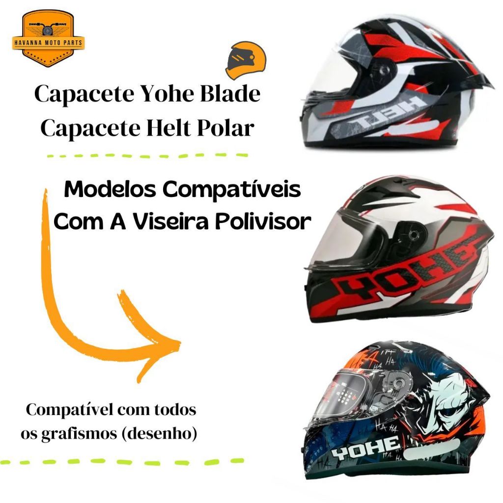 Viseira Cristal Capacete Helt Polar / Yohe Blade Antirrisco Injetada 2.2mm