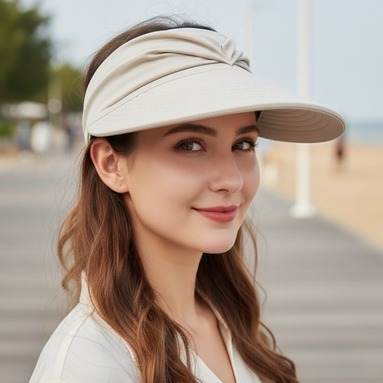 Viseira Feminina Praia Dupla Face Uv50+Turbante Esporte Verão Corrida Com Proteção Solar