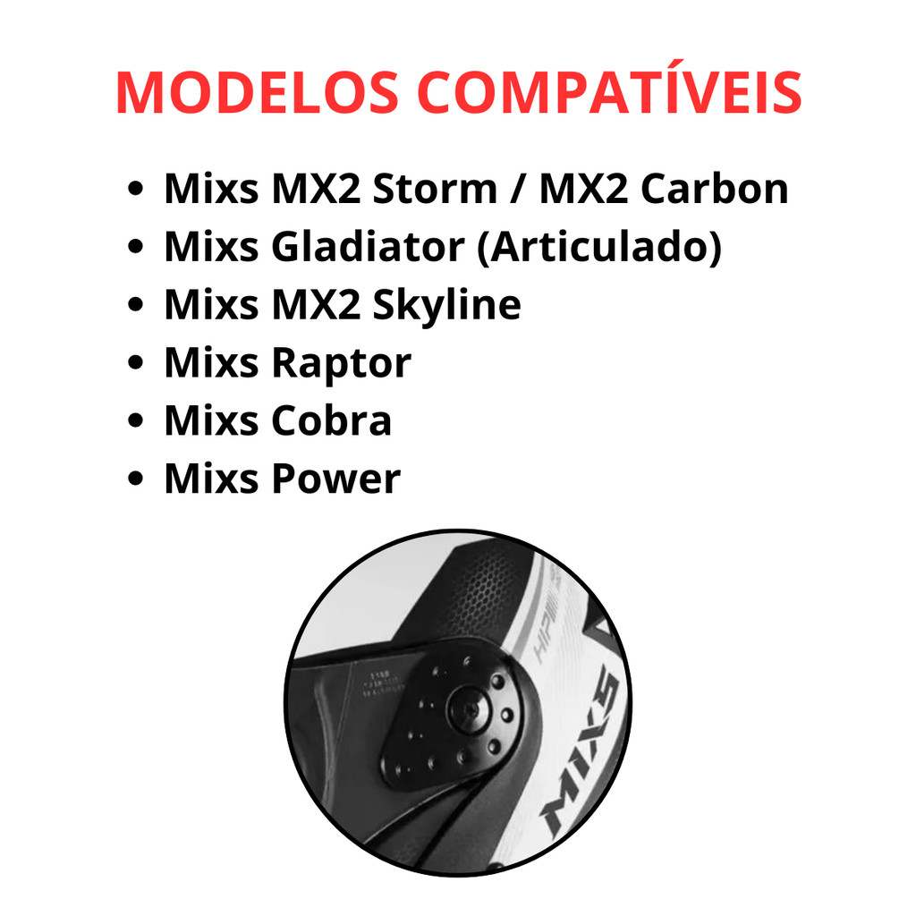 Viseira Fumê Capacete Mixs MX Cobra / Gladiator Especificações tecnicas: - Viseira de policarbonato - 2mm de espessura - Proteção UV Padrão Original: - Peças extremamente precisas e super-resistentes, oferecendo total segurança durante o uso. - Os produtos possuem encaixes perfeitos e não necessitam de adaptações para serem instalados. Quantidade de itens no pacote: - 1 Viseira Mix Cobra Fumê Marca: Polivisor Cores disponíveis: Cristal e Fumê Capacetes compatíveis: Mixs Gladiator Neo Mixs Gladiator Delta Mixs Gladiator Anubis Mixs Mx2 Skyline Mixs Mx2 Power Mixs Raptor Mixs Mx2 Cobra Antes de efetuar sua compra, tire todas as suas dúvidas sobre o produto no campo de perguntas, assim podemos oferecer um atendimento com qualidade e você receber o produto desejado sem precisar devolvê-lo. Perguntas Frequentes: A viseira possui tamanho? R: Nao, a viseira serve nas numerações 56 a 62. A viseira serve para o Mix Fokker? R: Nao, sao modelos diferentes. A viseira serve para capacetes nao articulados? R: Nao serve A viseira serve para algum modelo além do Mix Cobra? R: Não, cada modelo de capacete possui sua viseira específica. Eu posso limpar a viseira? R: Sim, você pode limpá-la com sabão neutro e água corrente, lembrando que adesivos podem deixar resíduos de cola e atrapalharem na visão do usuário. Não cobrimos danos por uso incorreto ou instalação inadequada. Garantia do Vendedor: 7 dias