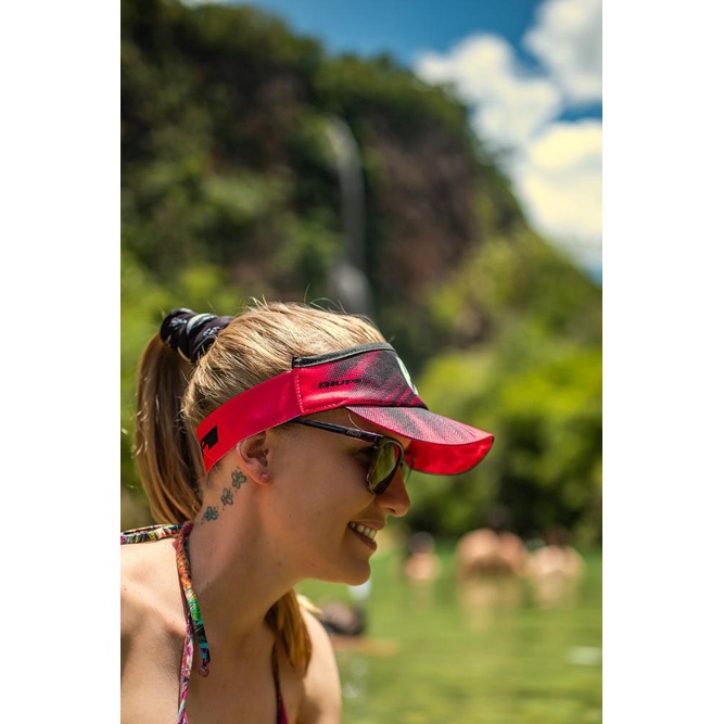 A viseira HUPI vem ao mercado para que você possa esfriar a cabeça e preocupar-se com nada além de correr. Isto porque é um item tão leve e confortável que você nem vai sentir na cabeça! Qualidade profissional A fabricação é realizada 100% em poliéster, que auxilia na transpiração, evitando a retenção de suor refletindo na qualidade da sua corrida. A aba curva protege os olhos e a pele da região facial dos raios ultravioletas que podem causar danos permanentes à sua saúde. A faixa de sustentação da viseira é ajustável e veste muito bem, sem qualquer peça de plástico ou metal que possa causar desconforto. Fabricada em poliéster também é projetada para não reter suor, mas promover sustentação sem incômodo. A parte interna da faixa, na região da aba possui um tecido aveludado, evitando que o suor escorra em direção aos olhos. Ficha técnica * Composição: 100% poliéster; * Peso: 50 gramas; * Aba curva; * Tecido aveludado na parte interna frontal; * Faixa de sustentação moldável; * Tamanho único.