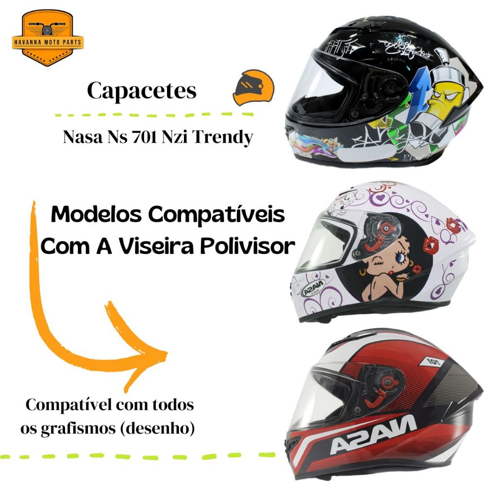 Viseira Polivisor P/ Capacete Nasa Ns 701 Nzi Trendy Antirrisco 2.2mm