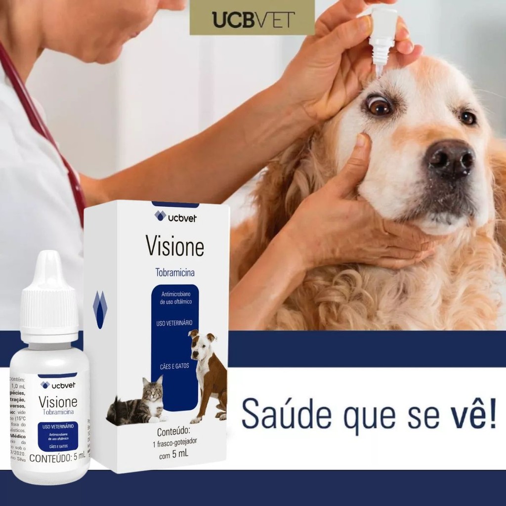 A MANADA ANIMAL é um marketplace de produtos veterinários. É a escolha certa para tutores que prezam pela qualidade dos produtos que seu animal necessita. Tudo com o suporte de uma equipe de veterinários e gestores com mais de 10 anos de experiência no mercado. Fique tranquilo, todos os nossos produtos são originais, adquiridos através de distribuidores credenciados! Ah, e todas as vendas acompanham nota fiscal! MANADA ANIMAL, Tranquilidade pra você, cuidado para ele! ______________________________________________________ Descrição Visione é uma solução oftálmica estéril com ação antimicrobiana de uso tópico, indicado para o tratamento de infecções oculares externas e seus anexos, causadas por bactérias sensíveis à tobramicina, com efeito antibactericida. A tobramicina é um antimicrobiano pertencente à classe dos aminoglicosídeos, que atua inibindo a síntese proteica através da interação com a subunidade 30S presente no ribossomo bacteriano, causando a morte da bactéria pelas alterações na permeabilidade da membrana celular. INDICAÇÃO É indicação para o tratamento de infecções oculares bacterianas, como conjuntivites, ceratoconjuntivites e queratites em cães causadas pelas bactérias: Staphylococcus aureus, Staphylococcus epidermidis, Klebsiella pneumoniae e Morganella morganii, e em gatos nas infecções oculares causadas pelas bactérias: Staphylococcus aureus, Staphylococcus epidermidis, Klebsiella pneumoniae e Morganella morganii. FÓRMULA Cada 1,0 mL contém Tobramicina...............3,0 mg Excipiente q.s.p..........1,0 mL POSOLOGIA E FORMA DE USO O Visione é de uso exclusivamente oftálmico. A dose recomendada para cães e gatos é de uma gota em cada olho, a cada 12 horas. A duração do tratamento pode variar entre 10 a 14 dias.