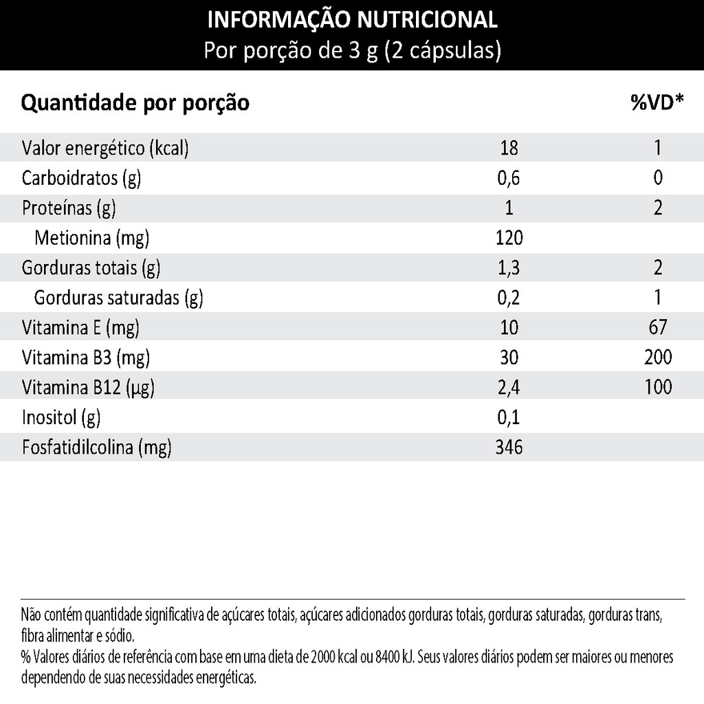 INFORMAÇÕES DE DESTAQUE Fórmula inovadora: inositol, L-metionina, clorofila, vitaminas E, B3 e B12 346 mg de fosfatidilcolina por porção Cápsula softgel de rápida absorção Não contém glúten DESCRIÇÃO O Hepatofor é um suplemento alimentar desenvolvido para complementar a dieta com nutrientes que apoiam a saúde hepática e o metabolismo. Sua fórmula combina inositol, L-metionina, clorofila e vitaminas essenciais (E, B3 e B12), que auxiliam no fígado. Com 346 mg de fosfatidilcolina por porção, o produto promove a absorção eficiente dos componentes ativos por meio de cápsulas softgel. Hepatofor é indicado para quem busca complementar os cuidados com a saúde hepática e manter o equilíbrio no metabolismo. COMPOSIÇÃO Nutrientes ativos: Lecitina de soja Óleo de semente de uva (Vitis vinifera L.) L-metionina Inositol Niacinamida (Vitamina B3) Acetato de DL-alfa-tocoferol (Vitamina E) Metilcobalamina (Vitamina B12) Corante clorofila Composição da cápsula: Gelatina, água purificada e umectante glicerina ALÉRGICOS: Contém derivados de soja. NÃO CONTÉM GLÚTEN. SUGESTÃO DE USO Ingerir 2 cápsulas ao dia (equivalente a 3g) ou conforme orientação de um profissional de saúde. INFORMAÇÕES IMPORTANTES Este produto é um suplemento alimentar e não substitui uma alimentação equilibrada. Consumir sob orientação de médico ou nutricionista. Armazenar em local seco e fresco, ao abrigo da luz e umidade. Manter fora do alcance de crianças.