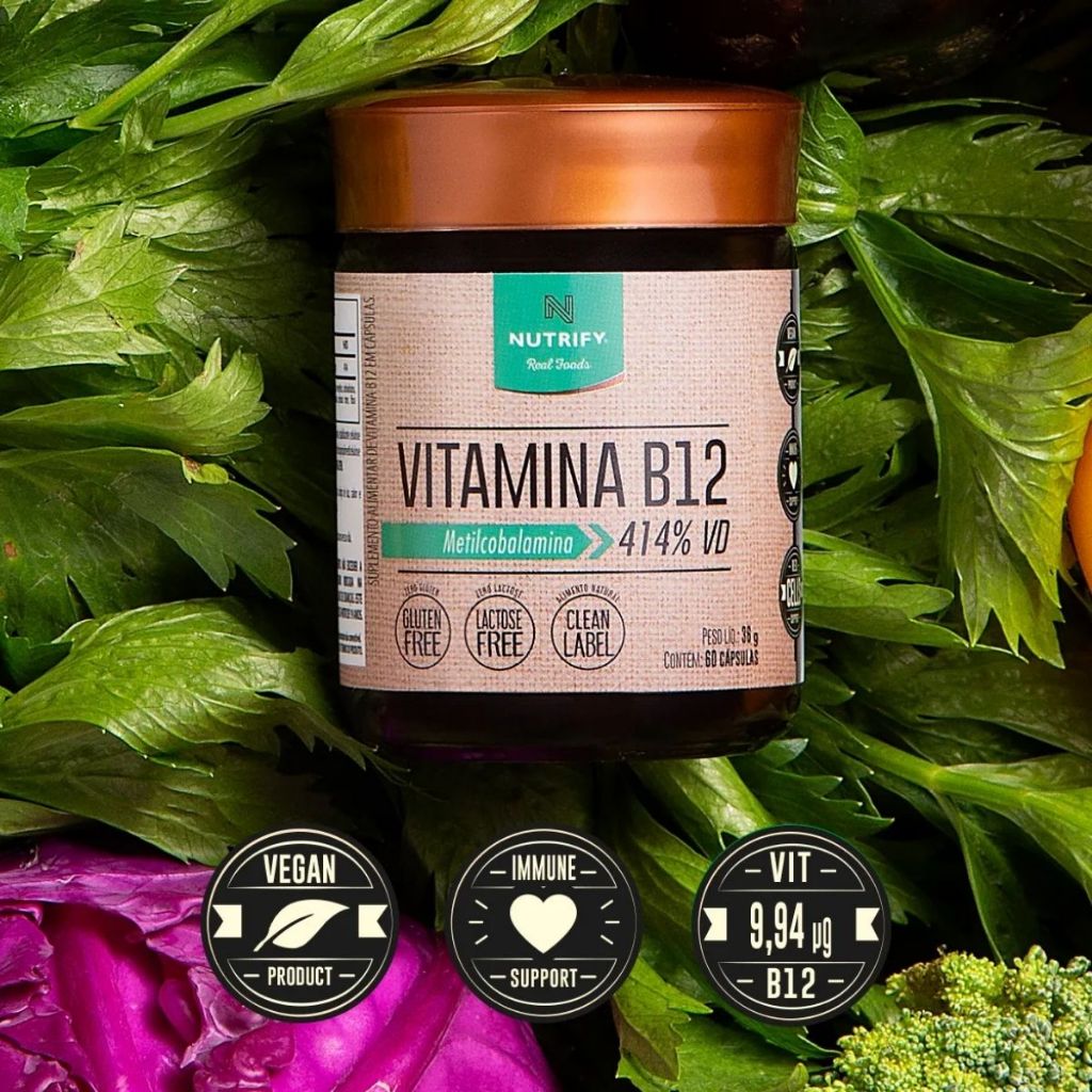 VITAMINA B12 Sua rotina da saúde começa bem assim Vitamina B12 Nutrify oferta o nutriente em sua forma 100% natural, a metilcobalamina. A vitamina B12 atua no funcionamento de diversos processos do organismo, sendo essencial no metabolismo dos carboidratos, proteínas e gorduras, além de auxiliar no bom funcionamento sistema imunológico.