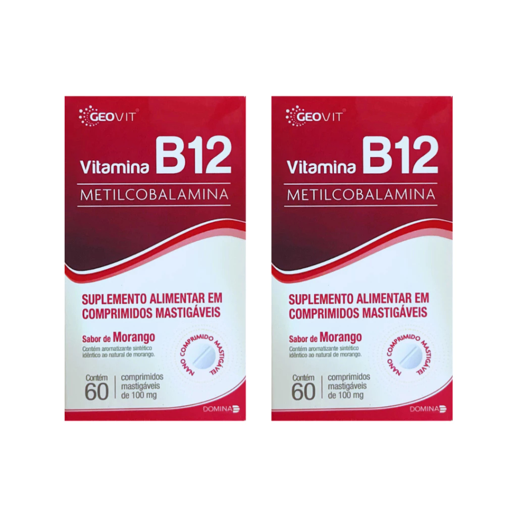 Vitamina B12 60 Comprimidos Mastigáveis Sabor Morango Geovit