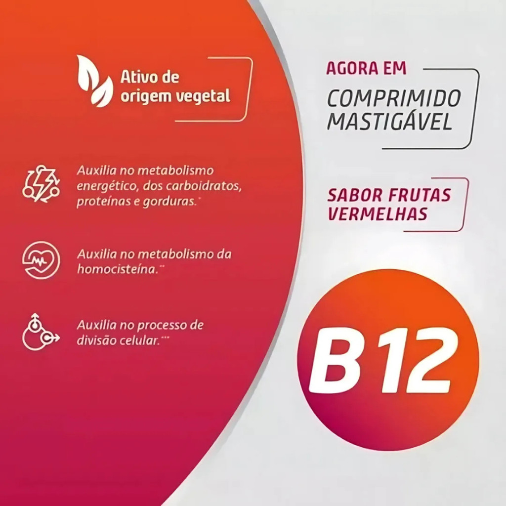 Vitamina B12 60 Cpr Mastigáveis - MaxinutriO que é a Vitamina B12 Mastigável Maxinutri? A Vitamina B12 Mastigável Maxinutri é um suplemento projetado para fornecer uma dose diária de vitamina B12 de forma prática e saborosa. Com sua fórmula em comprimidos mastigáveis, oferece uma maneira deliciosa e eficaz de manter sua saúde e vitalidade em dia. Para que serve a Vitamina B12 Mastigável Maxinutri? A vitamina B12 é essencial para várias funções no organismo, incluindo a produção de glóbulos vermelhos, o funcionamento adequado do sistema nervoso e a manutenção da saúde mental. Este suplemento ajuda a garantir que você obtenha a quantidade necessária dessa vitamina vital.
