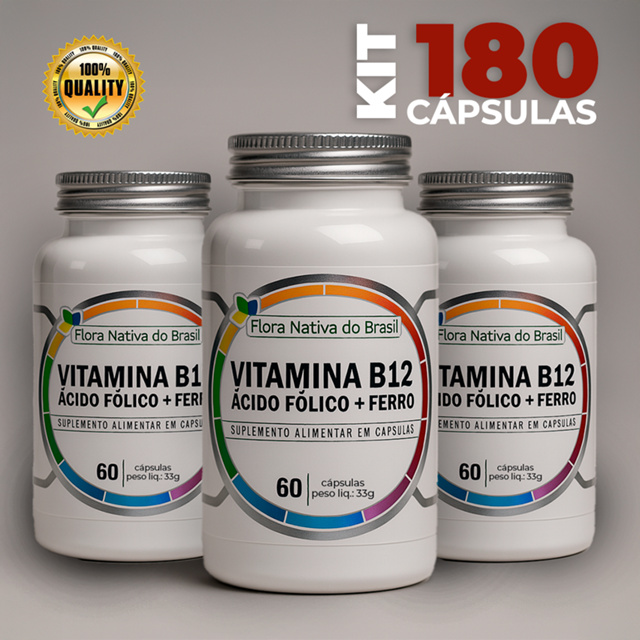 | Vitamina B12 + Ferro + Ácido Folico 180 cápsulas - Suplemento Natur... este produto | R$ 29,99 | 46% | 4.9/5 | 5 |
