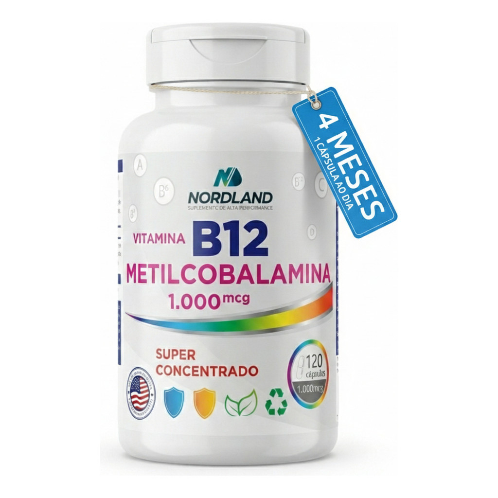 Suplemento de Vitamina B12 Metilcobalamina 1000mcg BENEFÍCIOS A Vitamina B12 é essencial para o bom funcionamento do sistema nervoso, produção de energia e saúde cardiovascular. A versão metilcobalamina é altamente biodisponível, garantindo melhor absorção pelo organismo. ESPECIFICAÇÕES - Marca: Nordland - Dosagem: 1000mcg por cápsula - Quantidade: 120 cápsulas - Super concentrado - Produto importado dos EUA RECOMENDAÇÕES Ideal para pessoas com deficiência de vitamina B12, veganos, vegetarianos ou quem busca mais energia e disposição. Consulte um profissional de saúde antes de iniciar o uso.