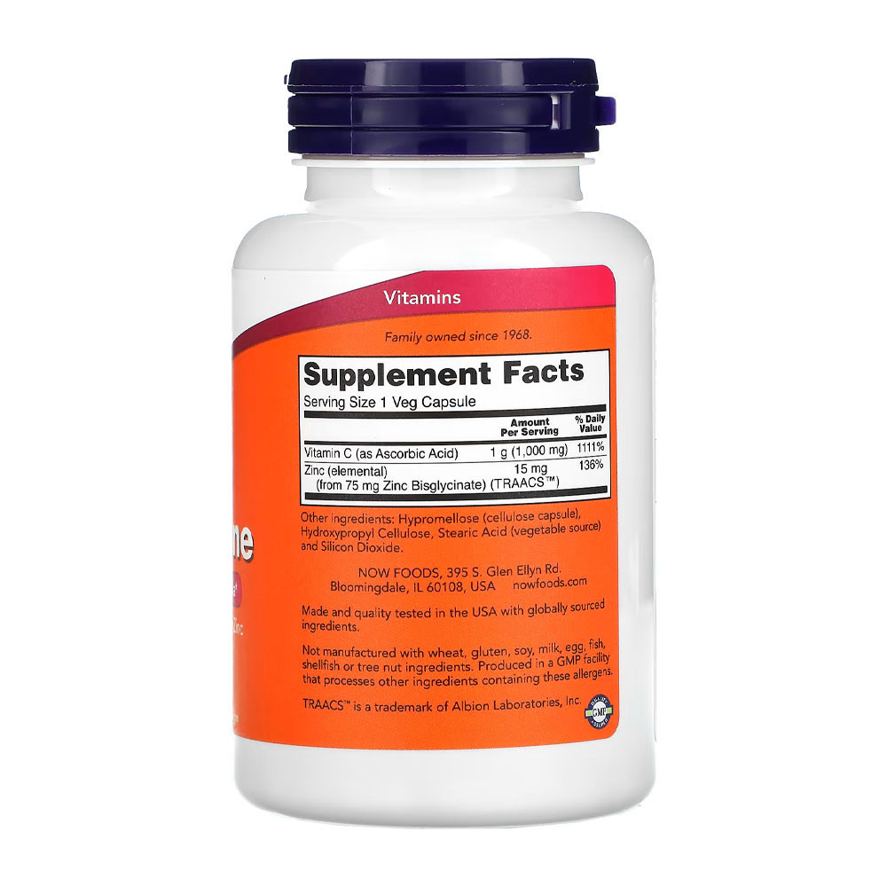 Vitamina C-1000 Zinco Immune Now Foods 90 Cáps Importado