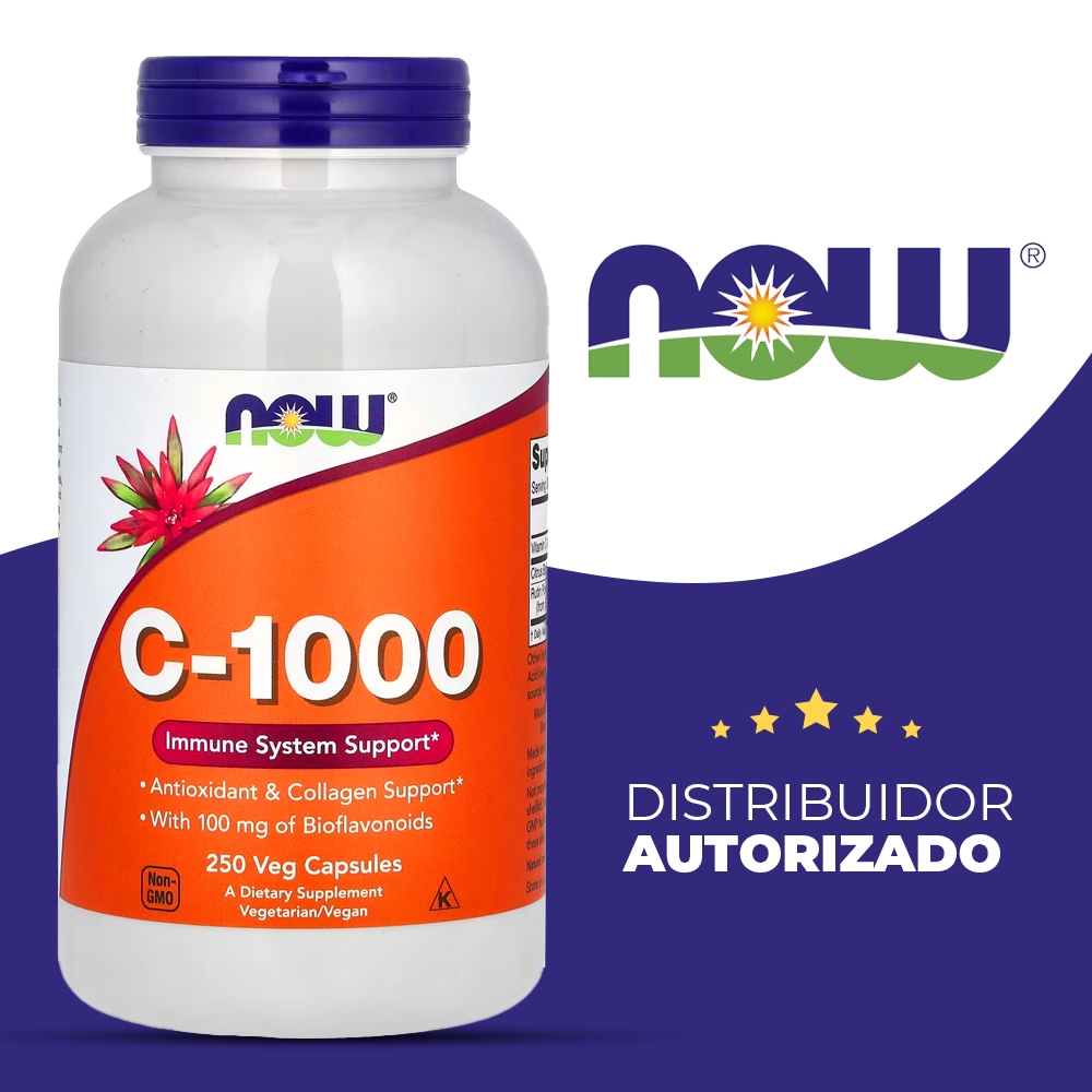 Vitamina C 1000mg Now Foods 250Cáps Made in Usa/Importado + Porta Cápsulas