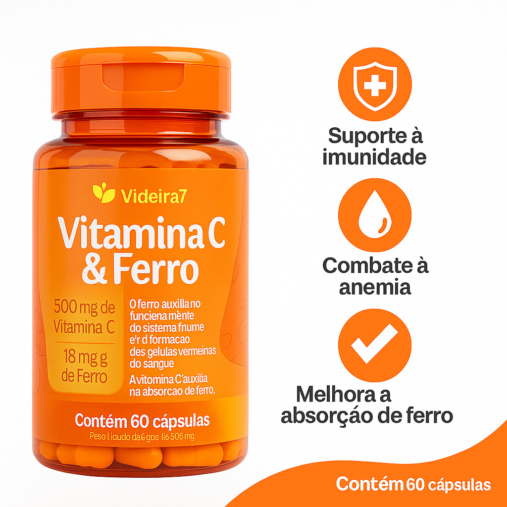 Vitamina C 500mg + Ferro 18mg – 60 Cápsulas | Videira7