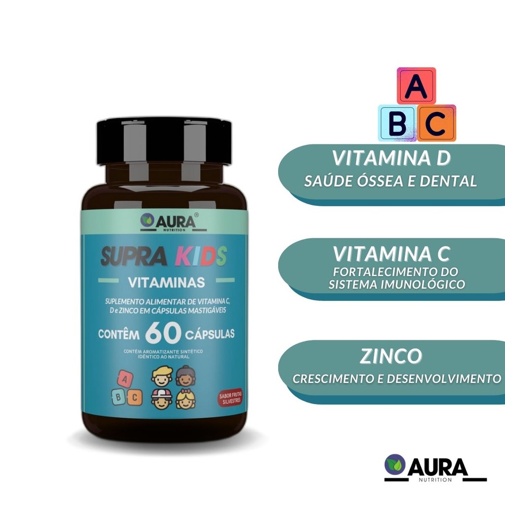 Vitamina C , D e Zinco Infantil Supra Kids + Ômega 3 Supra Kids 60 Cápsulas- Aura Nutrition