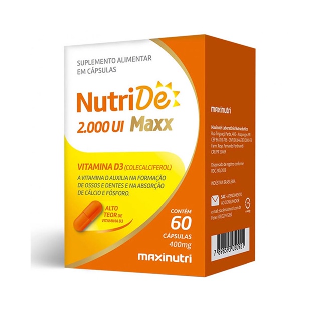 | Vitamina D 2.000 UI NutriDe 60 Cápsulas - MaxiNutri este produto | R$ 31,80 | — | 4.9/5 | 1 |
