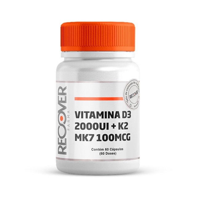 Seja bem-vindo à Recover Farma! Desenvolvemos produtos que atuam diretamente na vida das pessoas. Acreditamos na excelência e eficácia dos nossos produtos e com isso diversas fórmulas foram criadas e aprimoradas no intuito de garantir mais qualidade de vida e mais bem-estar para os consumidores, afinal acreditamos que todos possam usufruir de uma vida mais saudável, duradoura e feliz. __________________________________________________________________________ ✅ PRODUTOS MANIPULADOS ✅ SUPLEMENTOS DE QUALIDADE ✅ ATIVOS CERTIFICADOS ✅ COM NOTA FISCAL ✅ ENVIO RÁPIDO __________________________________________________________________________ Você, cliente, vem sempre em primeiro lugar. Conte sempre conosco! Ficou com dúvida? Chame a gente no chat! Será um prazer te ajudar. - Vitamina D3 2.000ui + Vitamina K2 Mk-7 - 60 Cápsulas Recover - Farma Qual a composição? Este produto é composto por: Vitamina D3 (Colecalciferol) 10.000 Ui e Vitamina K2 Mk-7 200 mcg / Excipiente q.s.p 1 cápsula. Qual o melhor horário para usar? O melhor horário deve ser indicado por seu médico. Mas, no geral, tomar 1 cápsula ao dia, junto com alguma fonte de gordura boa (como abacate, castanhas, ovos etc). Advertências Este produto é um suplemento alimentar. Seu uso deve estar associado a uma alimentação equilibrada e hábitos saudáveis. As informações aqui contidas são de caráter informativo e não substituem orientações de profissionais da saúde. Consulte um profissional qualificado antes de iniciar qualquer suplementação. As imagens são meramente ilustrativas.