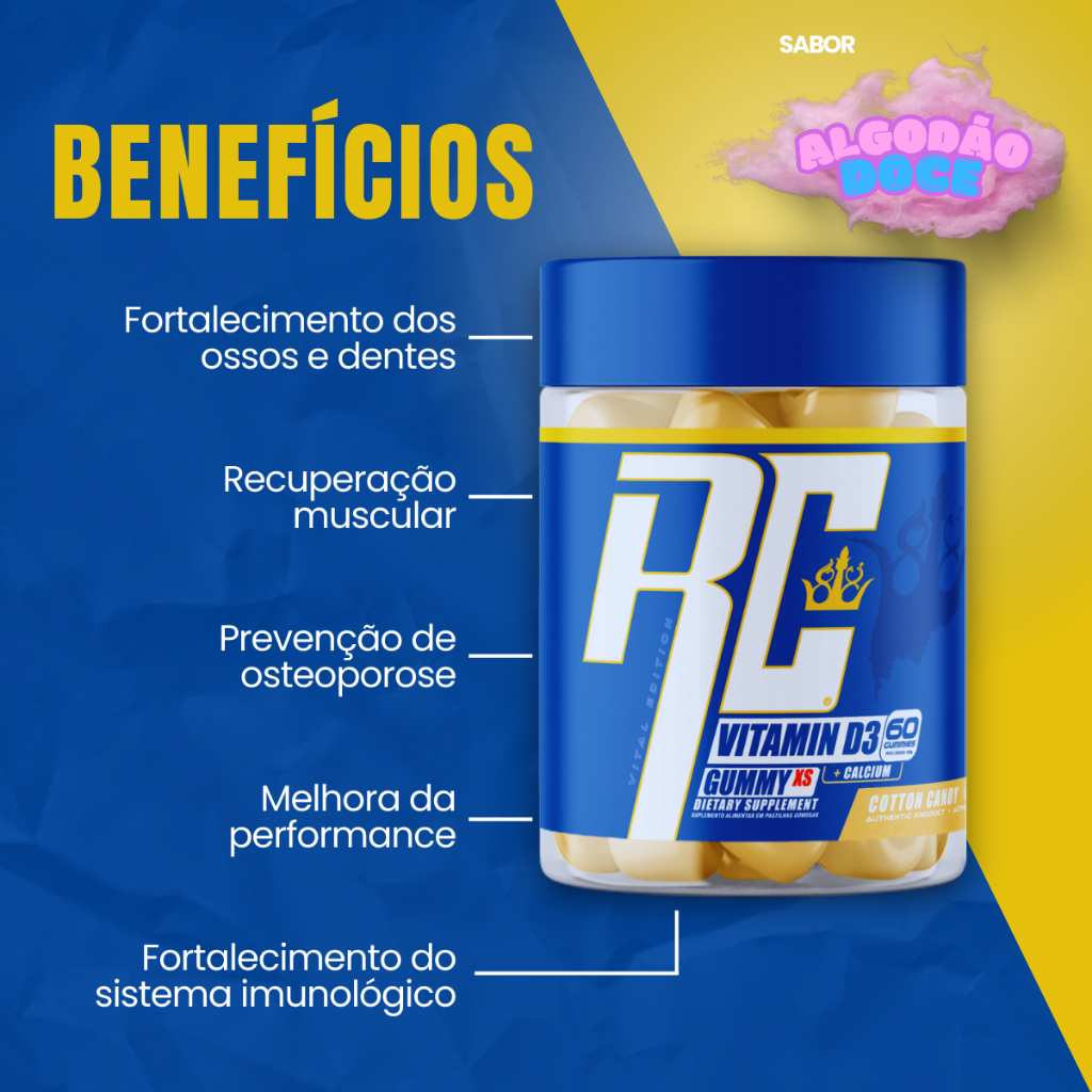 Vitamina D3 + Calcio Original Importada Ronnie Coleman Suplemento em Gummie Sabor Algodão Doce