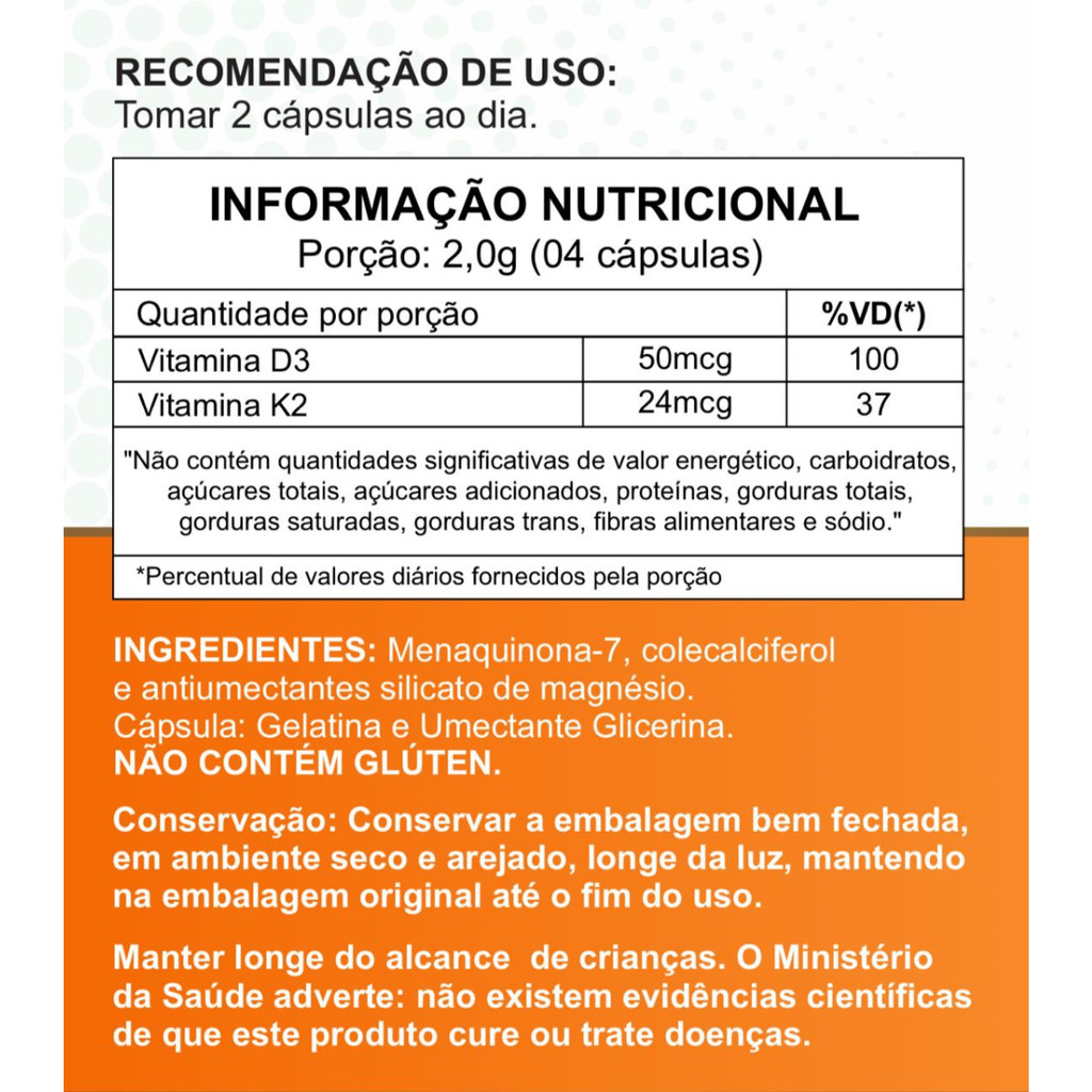 Vitamina D3 K2 120 Cáps 500mg Ossos e articulações, Imunidade