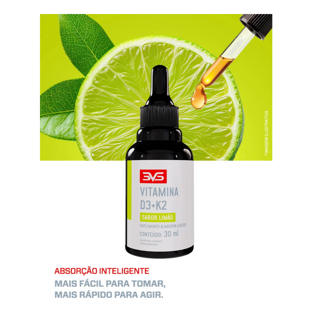 Vitamina D3 + K2 Mk7 Menaquinona Com Fórmula Super Concentrada Em Gotas 30ml - Sabor Limão