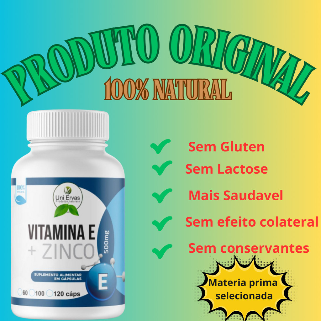 VITAMINA E + ZINCO 120 CPS 500MG - ORIGINAL - SUPLEMENTO ALIMENTAR