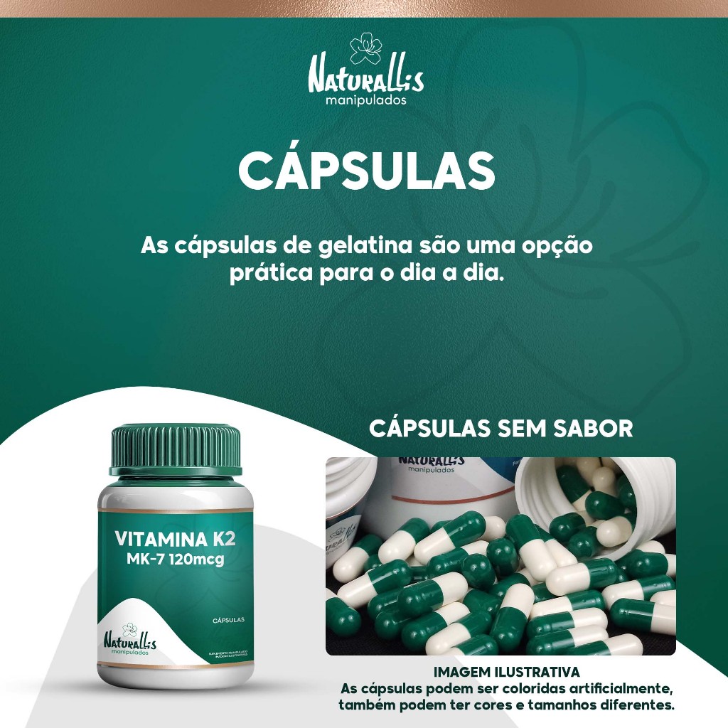 Vitamina K2 MK-7 120mcg - Naturallis 60 ou 120 cápsulas sem sabor