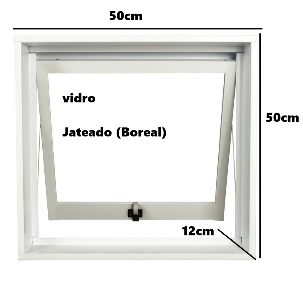 Vitrô Max Ar 50x50cm com Requadro de 12 cm POSSUI VIDRO JETEADO (BOREAL) - PRONTO PARA INSTALAÇÃO PINTURA BRANCA OU PRETA Ventilação Máxima e Alta Durabilidade Renove seu ambiente com o Vitrô Max Ar 50x50 cm! Projetado para oferecer excelente circulação de ar, fácil abertura e um visual moderno, ele é ideal para banheiros, lavanderias, cozinhas, depósitos e ambientes que precisam de ventilação constante. Com requadro de 12 cm, o vitrô garante instalação firme, acabamento perfeito e encaixe compatível com diversos tipos de parede. Características do Produto Dimensões do Vitrô: 50 cm x 50 cm Requadro: 12 cm de profundidade Abertura tipo Maxim-ar (abre para fora, permitindo ventilação contínua mesmo durante chuva) Estrutura resistente e de longa durabilidade Acabamento moderno e fácil de limpar Abertura suave e segura com sistema de alavanca Ideal para áreas com necessidade de ventilação constante Indicado para: Banheiro Lavanderia Cozinha Área externa Depósitos Ambientes comerciais Diferenciais que tornam este vitrô a melhor escolha Permite entrada de ar mesmo fechado parcialmente Ótimo custo-benefício Fabricado com materiais resistentes Fácil instalação Design moderno que combina com qualquer ambiente Vitrô Max Ar 50x50 Janela Maxim-Ar 50x50 cm Vitrô com requadro 12 cm Vitrô para banheiro Vitrô para lavanderia Janela de ventilação Vitrô basculante Janela de abrir para fora Janela Max Ar branca Vitrô branco Janela 50 x 50 Vitrô com abertura suave Vitrô resistente e durável Janela ideal para áreas úmidas Vitrô fácil de instalar
