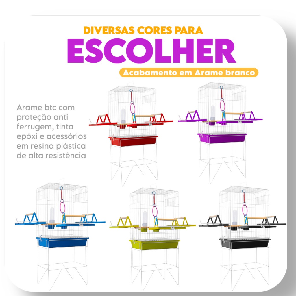 Viveiro Gaiola Pássaros Calopsita Aves Triplex Diversas Cores Fácil Montagem Acompanha Comedouro e Bebedouro
