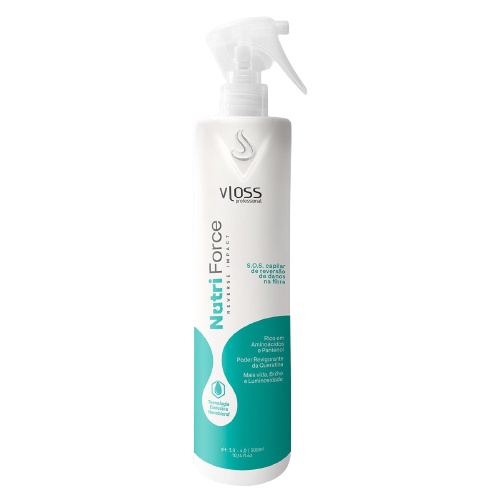 Vloss Nutri Forcer Reversor de Danos 300ml Tem O Poder De Reverter Os Danos Causados Ao Fio Por Processos Químicos, Mecânicos Ou Agressões Do Dia A Dia, Pois Através De Seus Aminoácidos Naturais E A Potente Ação Do Pantenol, Consegue Devolver A Fibra Nutrientes Essenciais Para Sua Estruturação Fazendo Com Que Os Cabelos Voltem A Transbordar Vida, Brilho E Luminosidade. Ele Tem O Poder De Reverter Danos Profundos Causados Aos Fios Por Excesso De Processos Químicos, Mecânicos Ou Por Agentes Externos Que Prejudicam Os Fios No Dia-a-dia. MODO DE USO : borrifar Nos Cabelos Secos Ou Úmidos O Reverse Impact Nutri Force Vloss E Deixar Agir Por 10 Minutos. De Acordo Com A Necessidade De Tratamento, Enxaguar Ou Não Os Fios, Escovar, Pranchar E Finalizar Como Desejar. *IMAGEM ILUSTRATIVA*