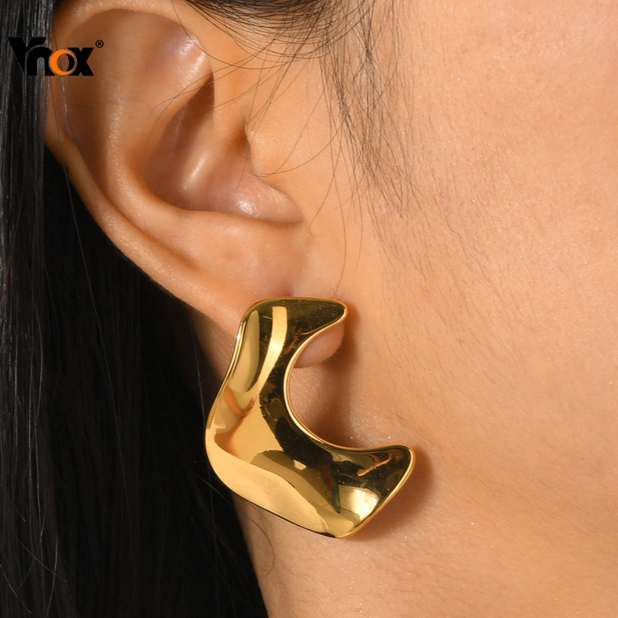 Vnox 1 Par De Brincos Geométricos De Aço Inoxidável Para Mulheres , Minimalistas Irregulares Dourados , Moda Feminina , Festa De Casamento , Joias , Presente