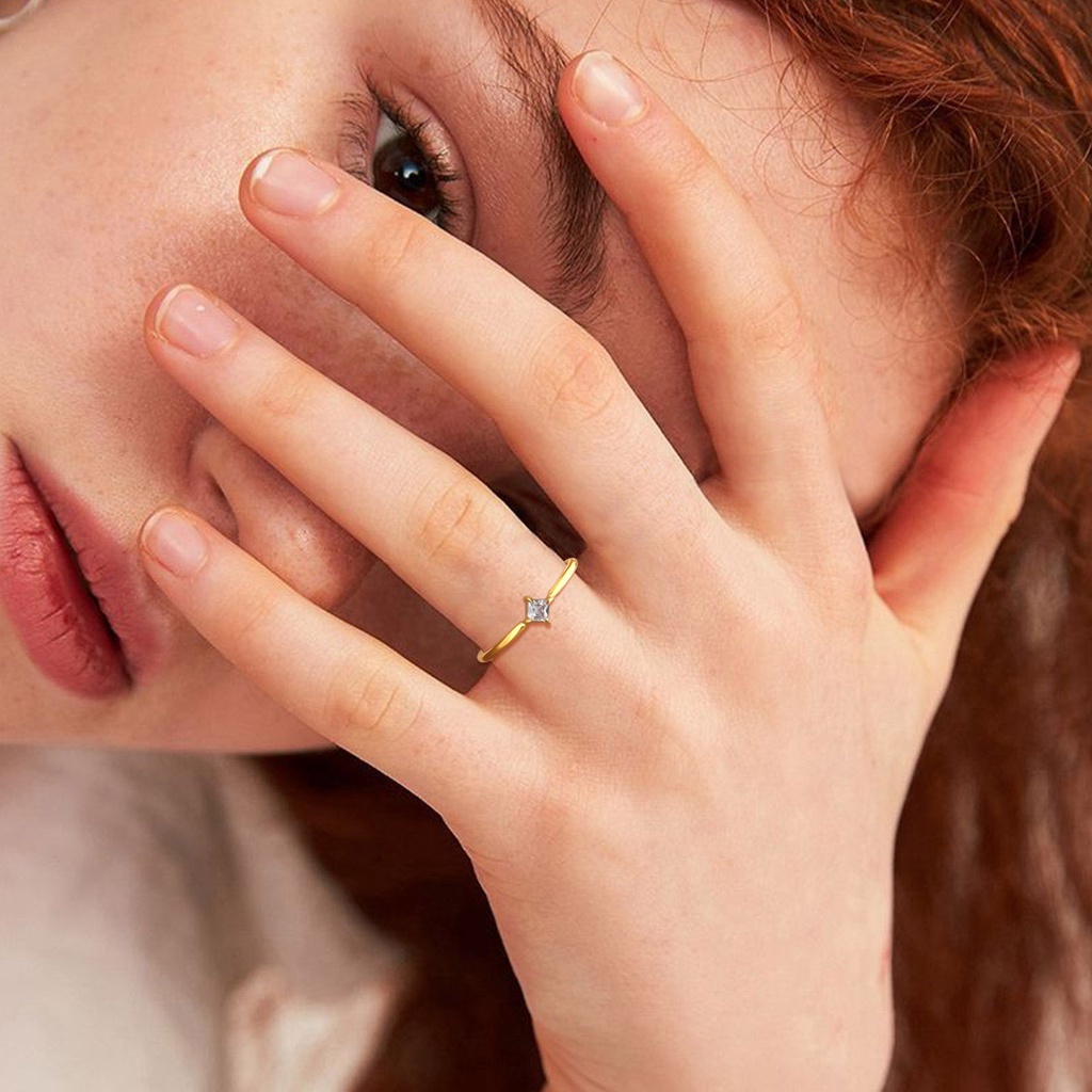 Vnox 18K Anel De Noivado De Zircônio Brilhante Ouro , Pequeno Diamante Para Mulheres 1,5mm