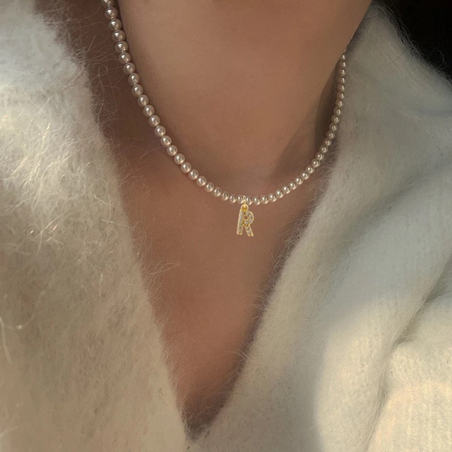 Vnox 26 Carta Zircônio Colar , Link De Corrente De Pérola Natural Inicial , Feito À Mão Dainty Para Mulheres