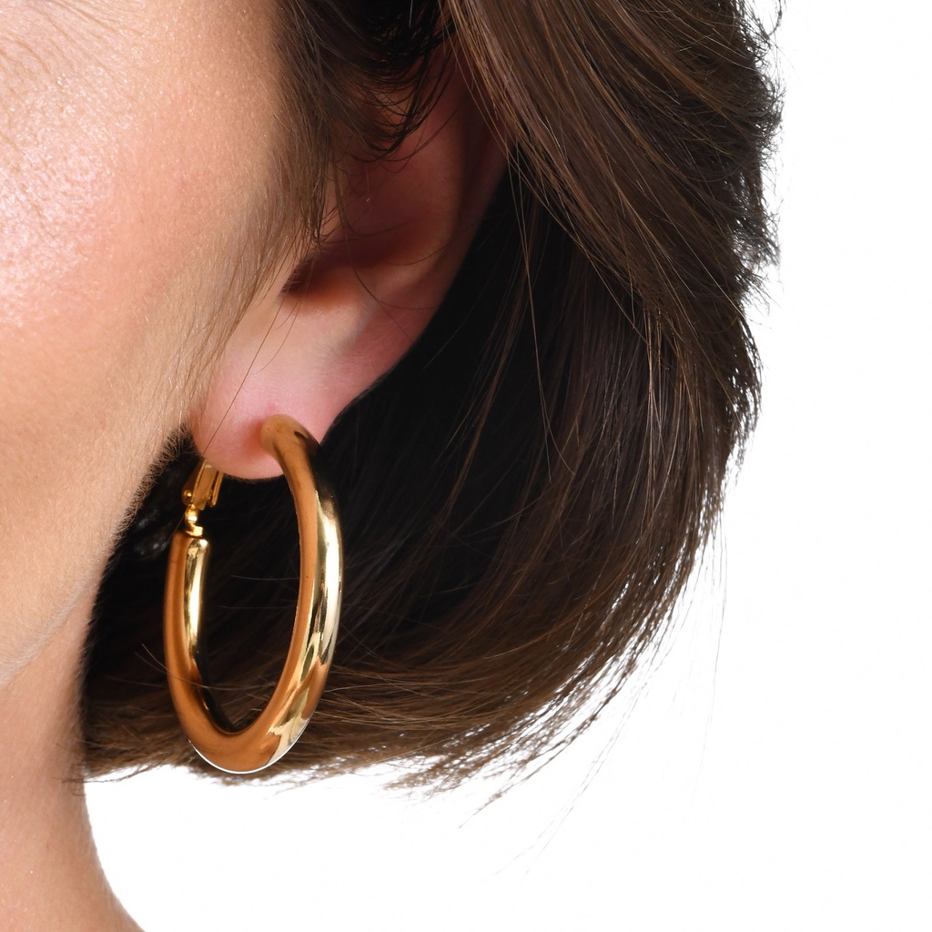 Vnox 30MM 40MM 50MM Brinco De Argola De Tubo Circular Para Menina Feminina , Ouro 18K Aço Inoxidável Minimalista Em Ângulo