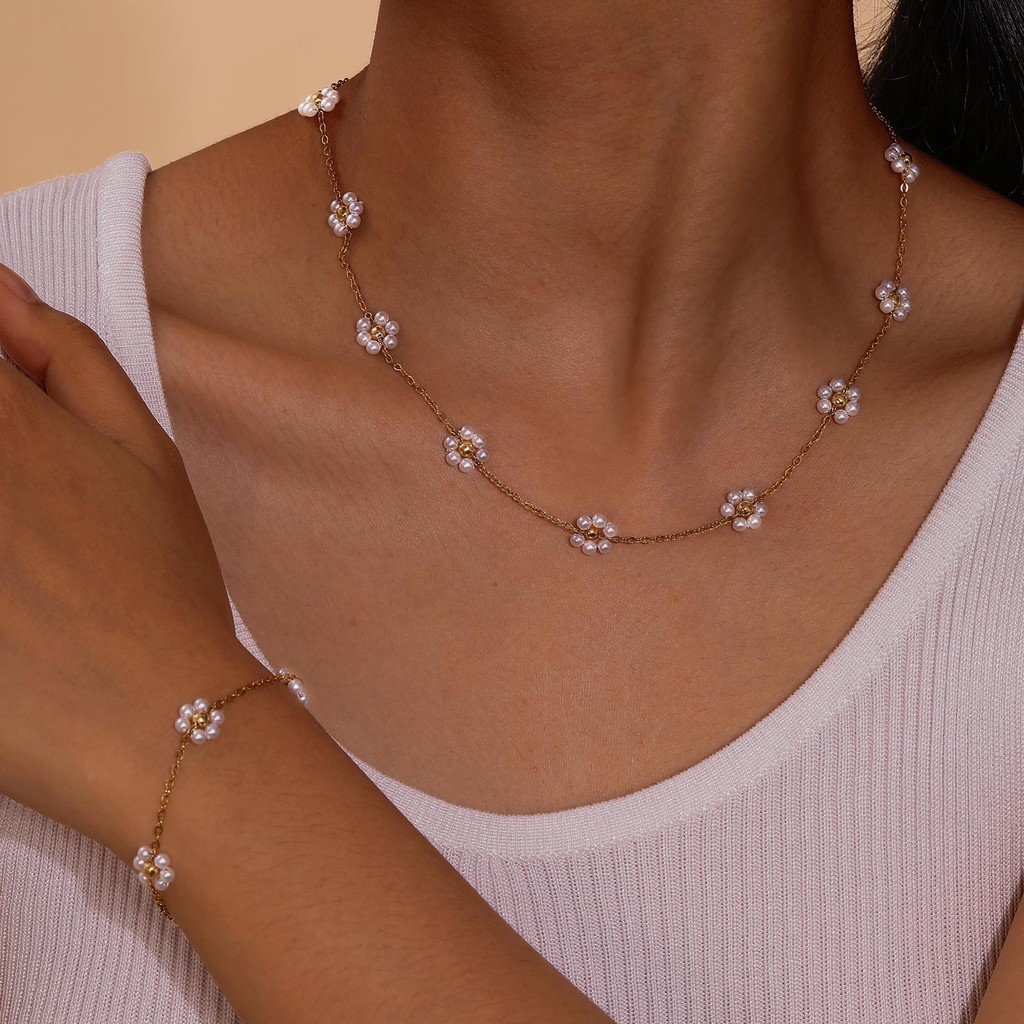 Vnox Aço Inoxidável Para Mulheres Colar De Imitação De Corrente Cruzada Plana Pérola Estilo Boêmio Oceano Pulseira Acessórios De Moda