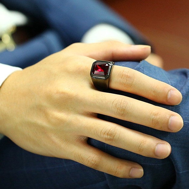 Vnox Anel CZ de Aço Inoxidável Dourado com Pedra Vermelha Quadrada Masculino Bijuteria Casual