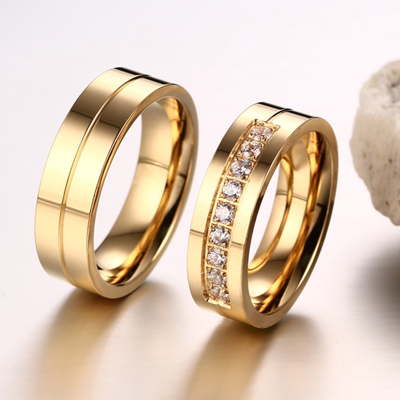 Vnox Anel de Casamento com Zircônia AAA em Cor Dourada Unissex Joia para Noivado/Casamento