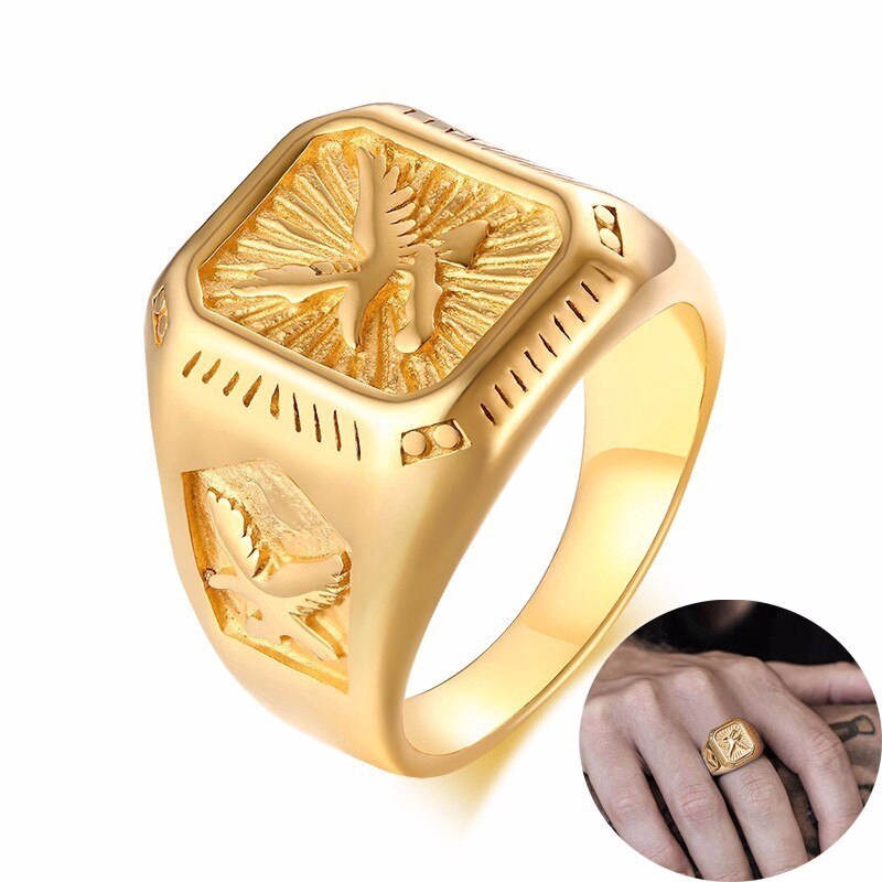 Vnox Anel De Sinete De Águia Americana De Animais Para Homens De Aço Inoxidável Dourado Masculino