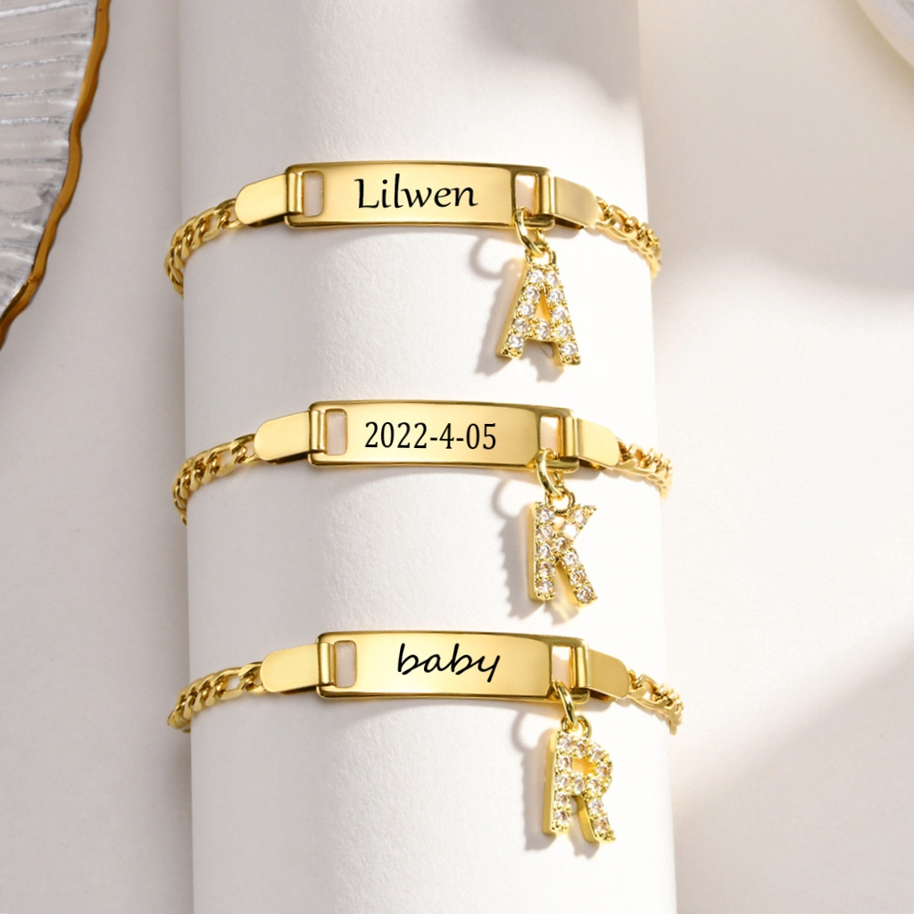 Vnox Baby Name Bracelet Com Pingente De Carta , Pulseira De Identificação De Criança Toddler Aniversário De Menino