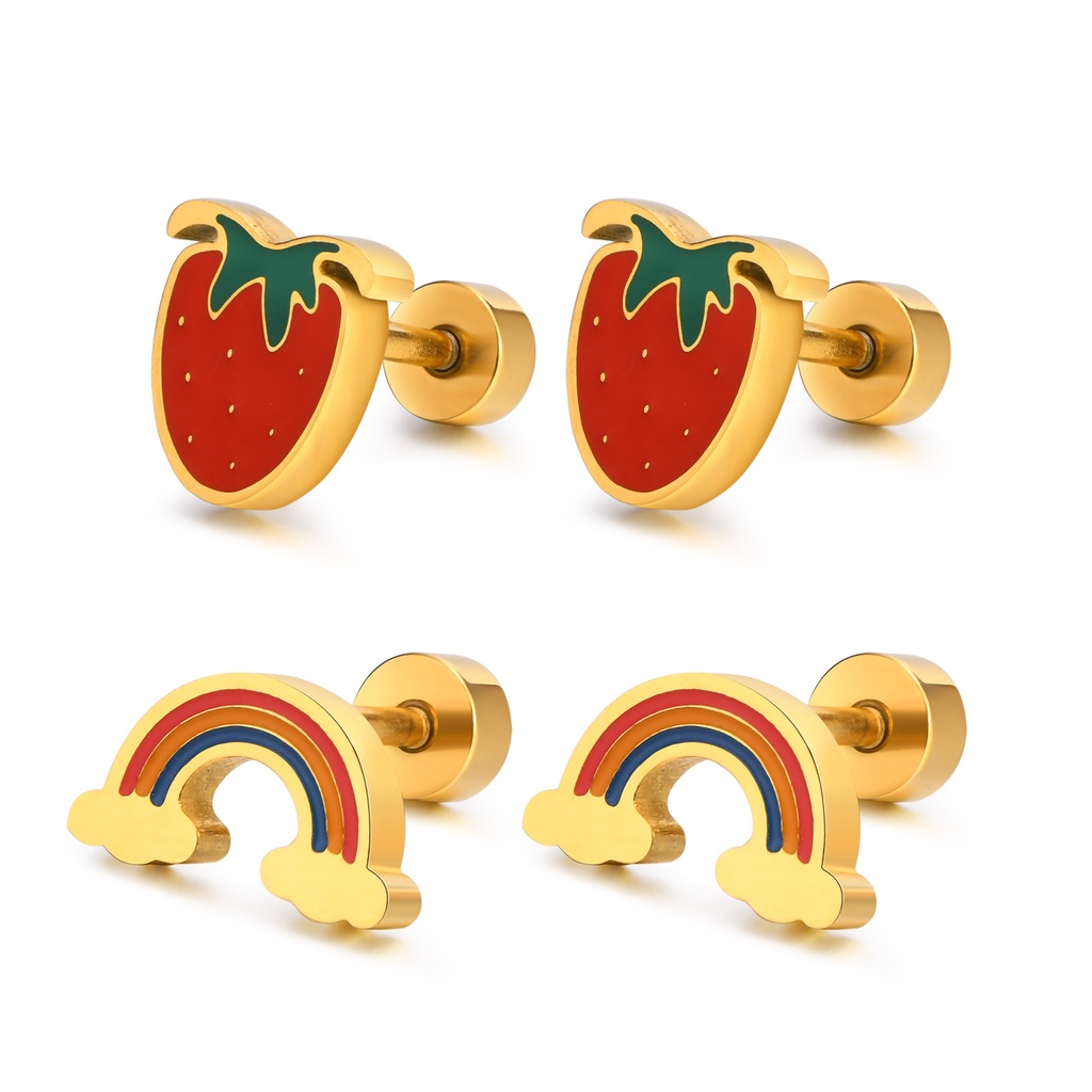Vnox Brinco De Tarraxa De Morango Arco-Íris , 14K Banhado A Ouro Hipoalergênico Para Meninas Pequeno De Sonho
