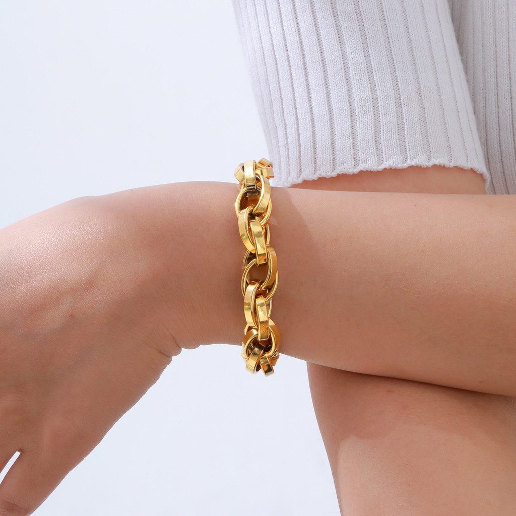 Vnox Chunky 11mm Bold Handmade Link Chain Pulseiras Para Mulheres , Pulseira De Aço Inoxidável Dourado Joia Presente