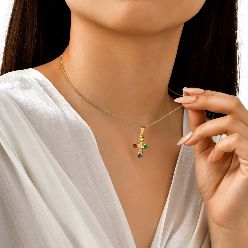 Vnox Colorido Pedra Natural Jesus Cruz Pingente Colar Feminino Aço Inoxidável Requintado Oração Fé Jóias